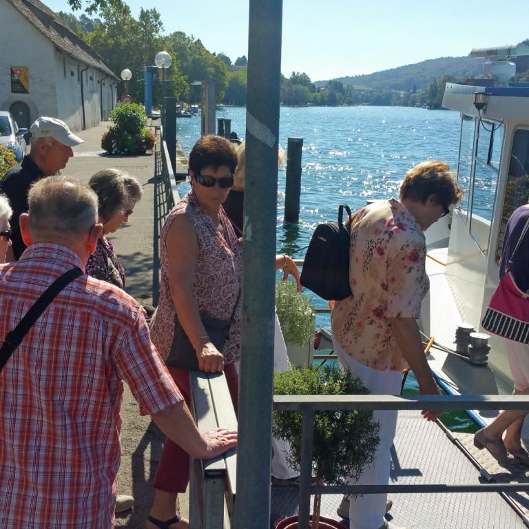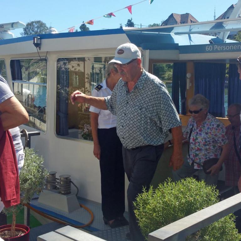 Am 24.8.2016 versammelten wir uns am Anlegeplatz der MS "Albatros" bei schönstem Wetter. Wir fuhren die schönste Stromlandschaft Europas hinauf Richtung Stein am Rhein, nahmen unser Mittagessen ein und fuhren wieder retour bis Schaffhausen. Der Nachmittag klang aus im "Lindli-Hus" bei kühlen Getränken und Kuchen. Einen herzlichen Dank an Eugen Gerschwiuler für die Organisation!